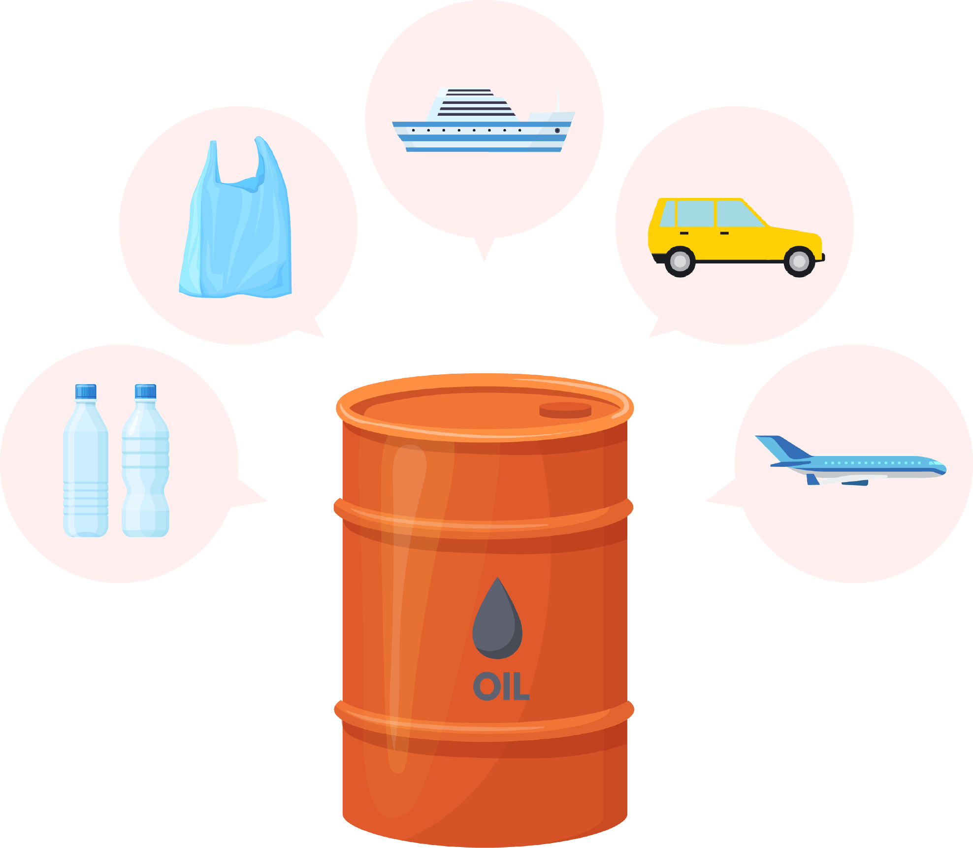 たとえば、車・飛行機・船などを動かす燃料や、プラスチック製品の元になる材料は同じ「原油」からできています。