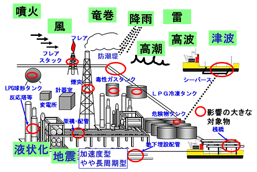 自然災害(下記項目)の再現期間に応じた最大値予測による設備上の弱点箇所を明確化し、潜在危険を回避するお手伝いをします。